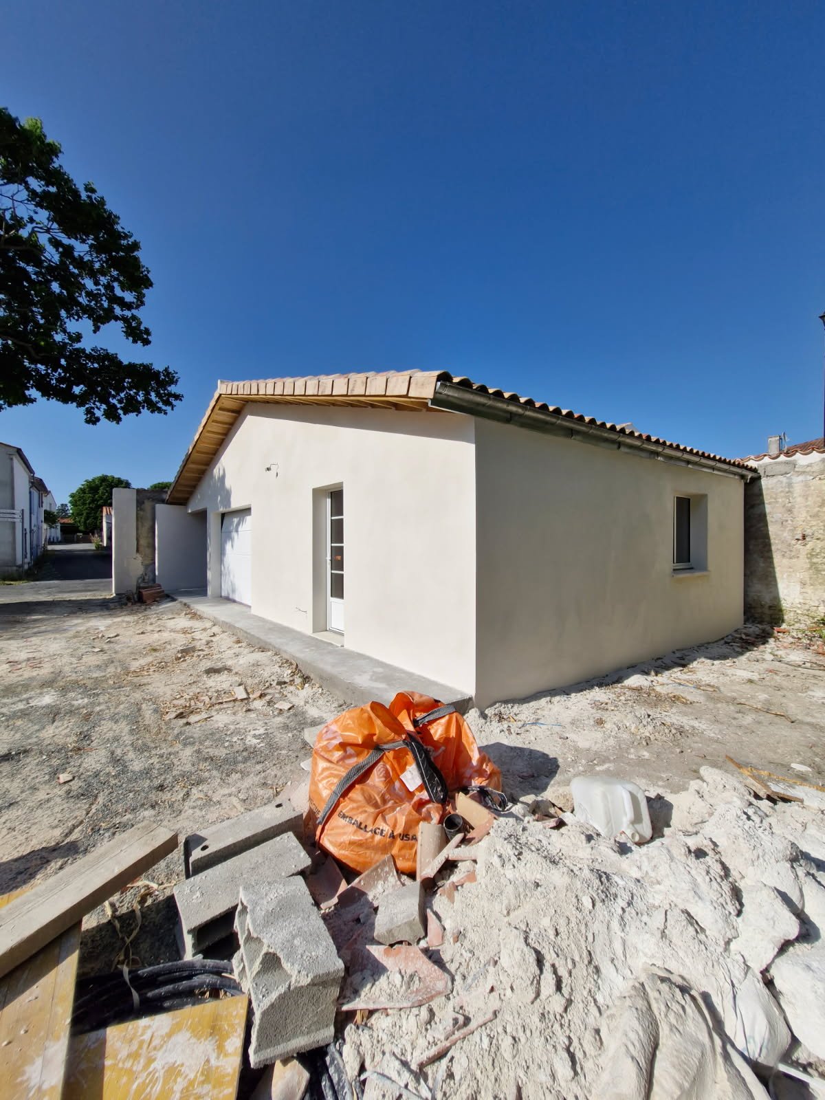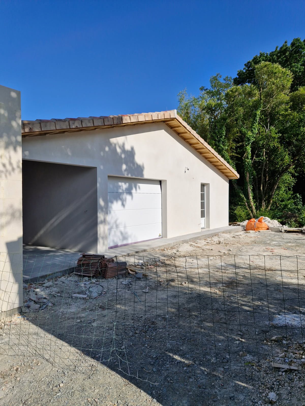 Projet de construction d’un grand garage atelier avec appentis extérieur, sur une grande parcelle à Salles-sur-mer. Ce projet prévoit la démolition de cabanons à l’abandon dans le jardin, ainsi que la coupe et l’élagage d’une partie de végétation (principalement des bambous) afin de créer l’espace du projet.
