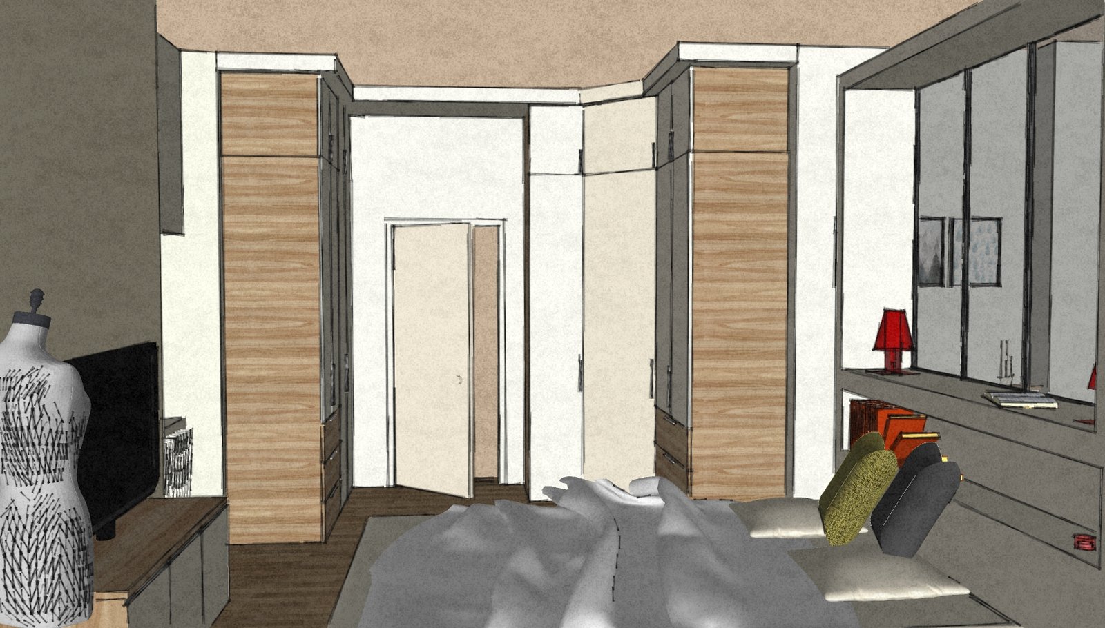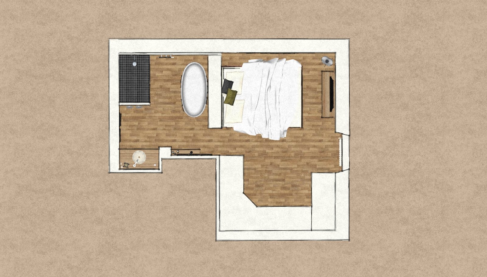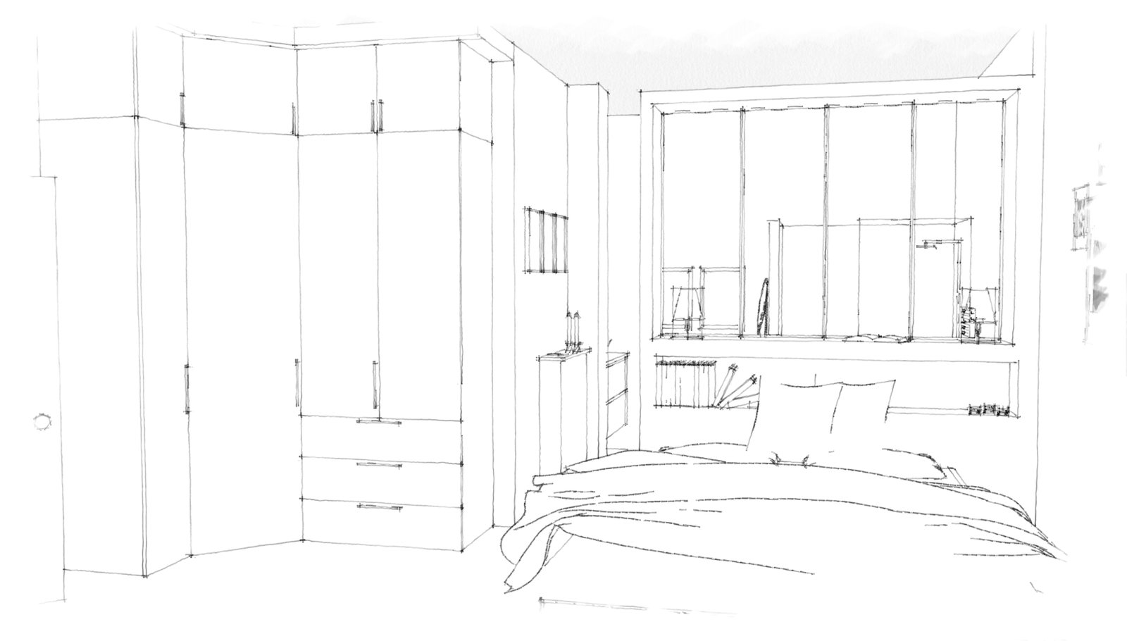 Le client est venu nous rencontrer pour réaménager sa chambre en suite parentale. Le principal questionnement de ce projet était de réussir à intégrer dans cette petite pièce l’ensemble de ses demandes : un dressing conséquent, une télévision au bout du lit, ainsi qu’une salle de bain ouverte avec une douche à l’italienne et une baignoire sur pied.​